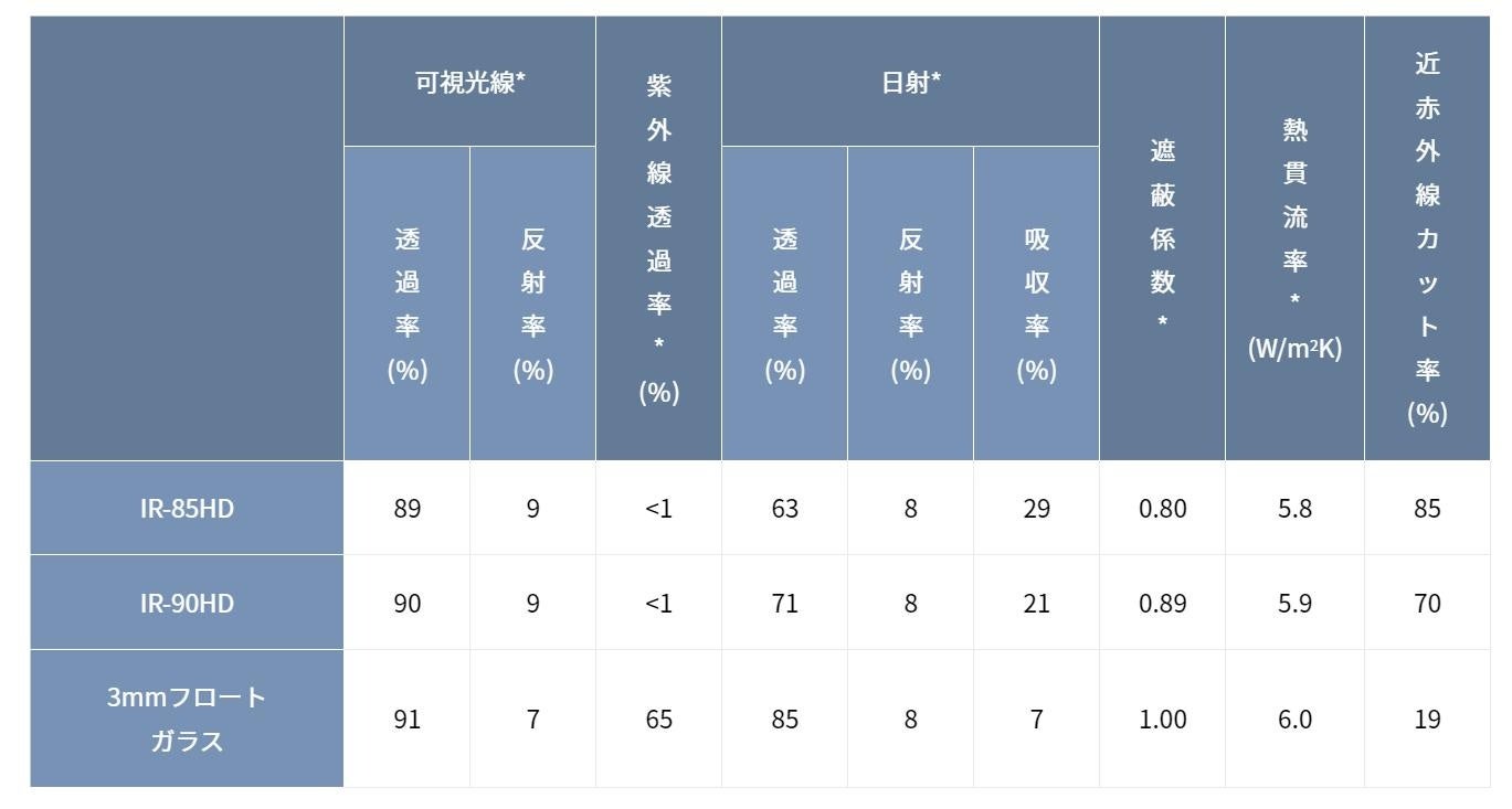 ※近赤外線カット率は当社独自の測定方法により、780nm~2,500nmの波長における透過率の平均値を100%から引いたものを数値としています。