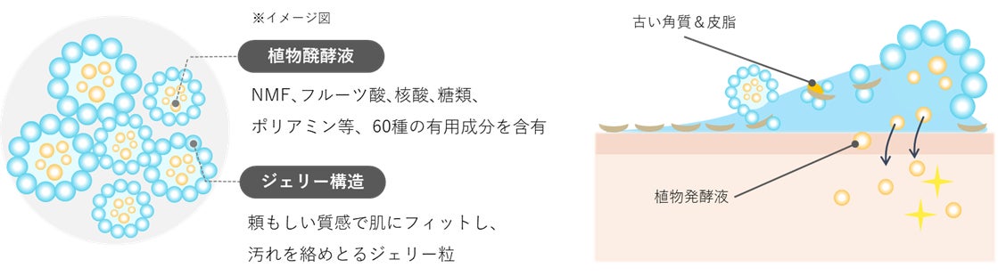 植物発酵液のジェリー粒で洗う新体験の独自洗浄機構