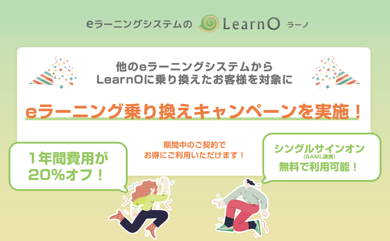 eラーニング乗り換えキャンペーンを実施!「LearnO(ラーノ)」が1年間20%OFF&有料オプション0円に