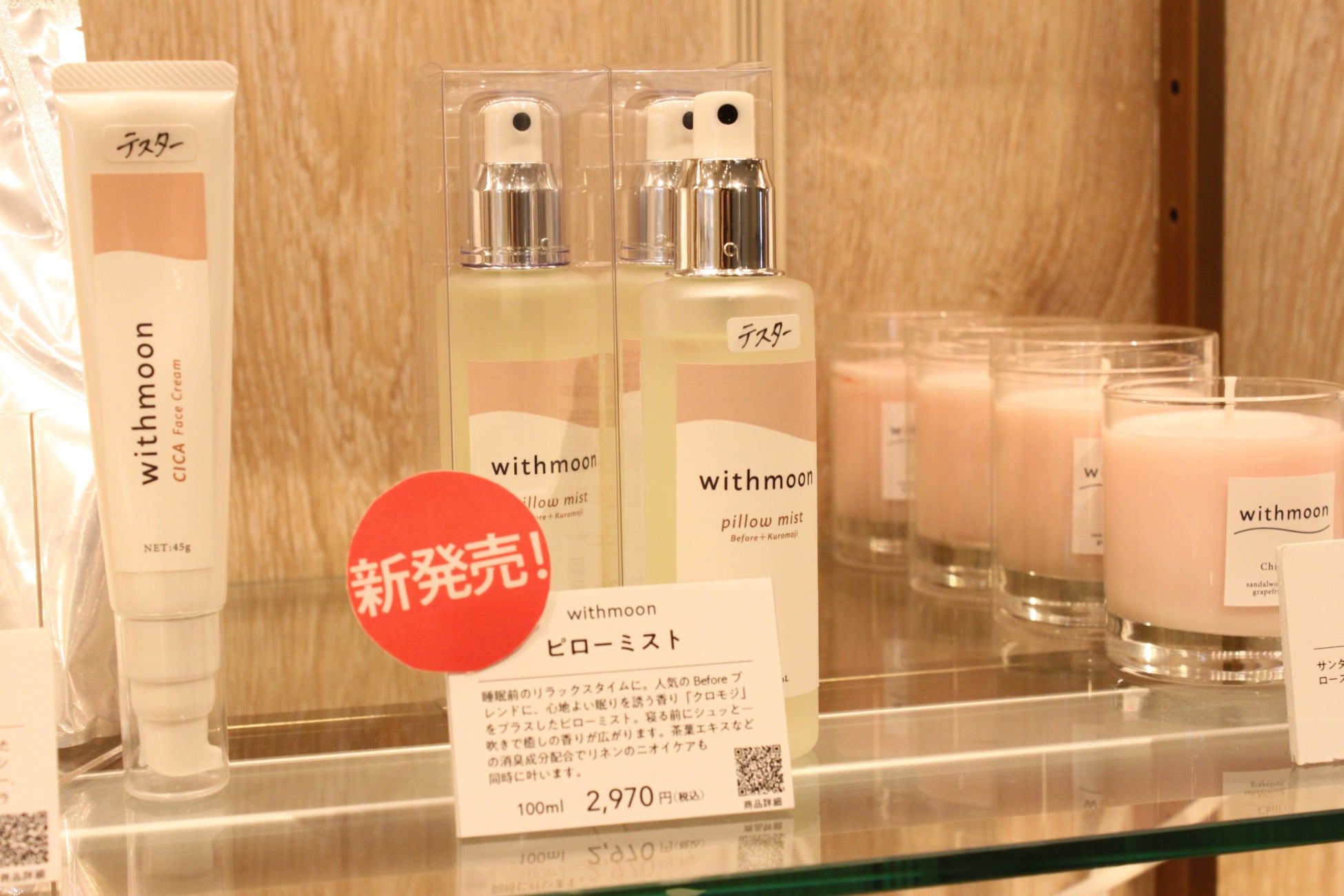1月25日から2月6日まで、新宿マルイ 本館1Fにて開催した、あしたるんるん初のPOPUPストアにてwithmoonピローミストの先行発売を行いました。実際に手に取ってご覧いただいたお客様からは「すごくいい香りでリラックスできる!」「消臭もできちゃうの?」と大好評。その場でコートなどにスプレーしていただき、商品をご体験いただきました。