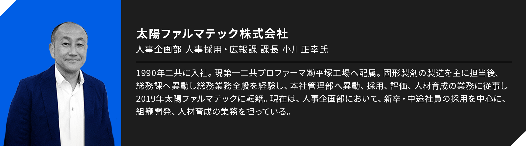 2019年10月に医薬品の製造受託機関として操業を開始、高品質な医薬品の安定供給に努め、グローバルな事業展開を目指す太陽ファルマテック株式会社。グループ会社である太陽ホールディングスが求める「自ら考え、行動できる自律型人材」を目指し、様々な育成プログラムを展開しています。技術水準の向上に努めることにより、低コストで高品質な製品の安定供給を実現。階層別研修/M職を含めたリーダー研修/未来共創ミーティング/各種勉強会など、これらの具体的な取り組み事例をご紹介し、今後の展望についてもご説明いただきます。