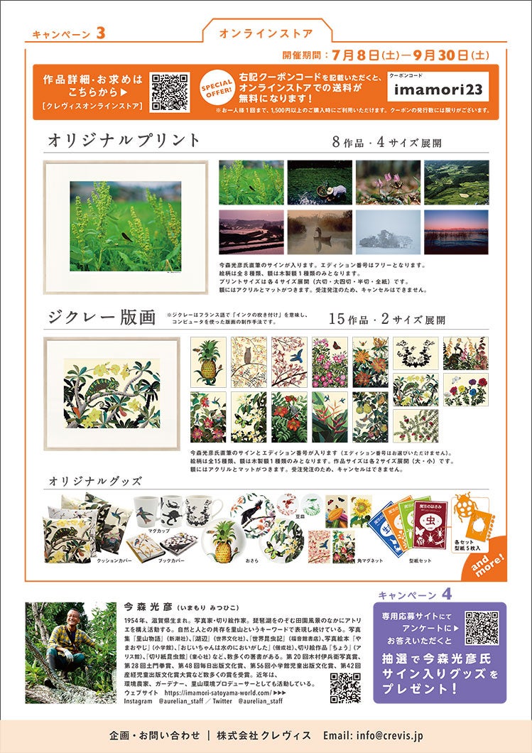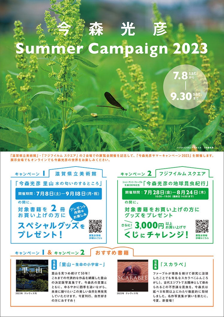 また7月28日からは富士フイルムフォトサロン 東京(フジフイルム スクエア内)にて、「ジャン・アンリ・ファーブル生誕200年記念 今森光彦の地球昆虫紀行」が開催されます。こちらの2会場での展覧会開催を記念して、株式会社クレヴィスでは「今森光彦サマーキャンペーン2023」を開催します。