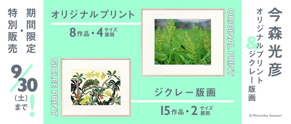 期間限定で今森光彦オリジナルプリント、ジクレー版画を特別販売いたします。どちらも今森さん監修のもとに制作し、直筆サインを入れ、額装(アクリル・マット付)してお届けします。貴重な機会にぜひお買い求めくださいませ。