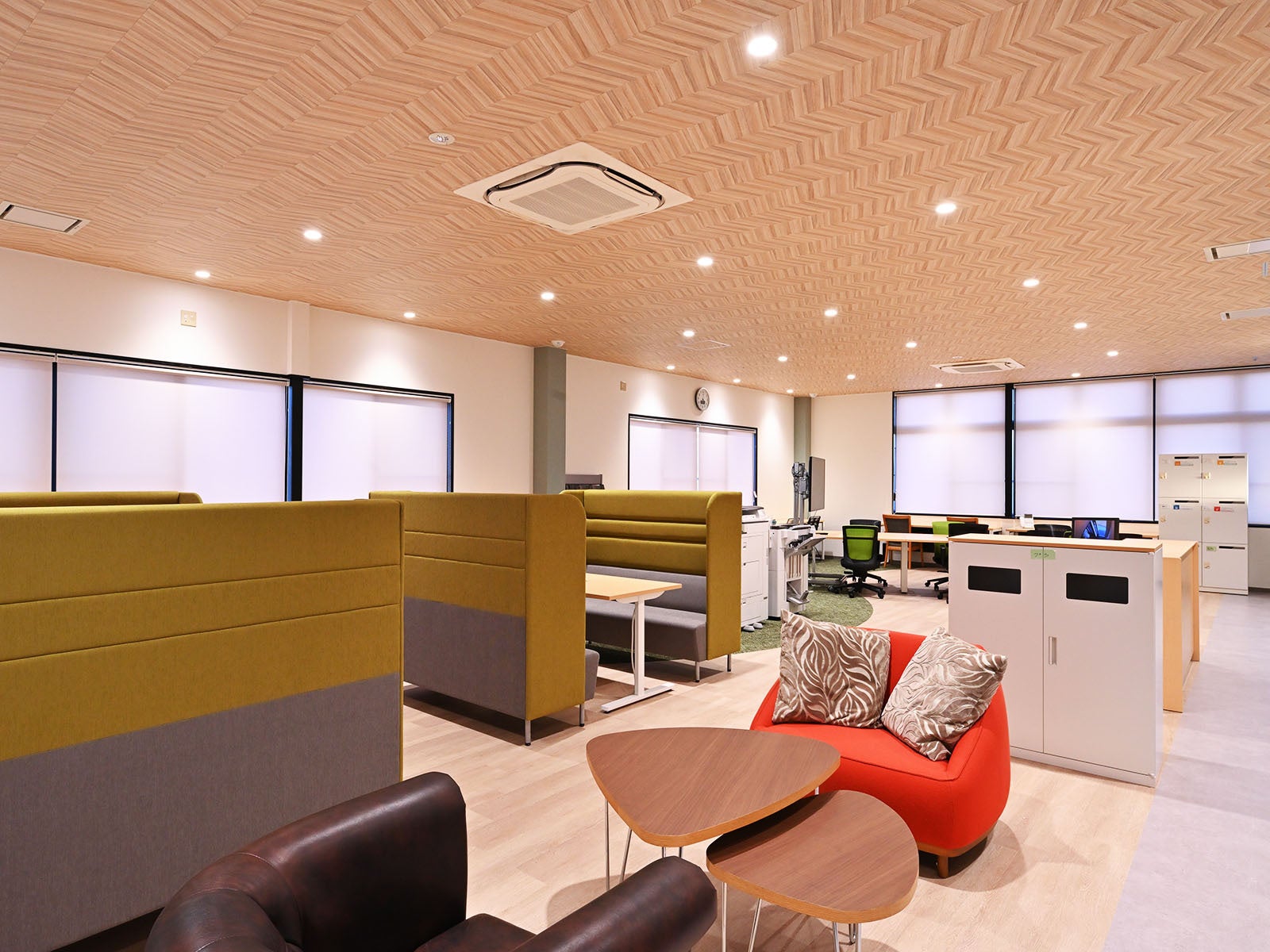 これまで豊橋事業所では、在籍する約30名の社員が着席できる固定席が設置され、オフィス内はデスクや個人管理による書類や荷物で大半を占めていました。日中に外出する社員が多いこともあり、オフィスのリニューアルに伴い固定席を廃止してフリーアドレスを採用。空いたスペースに社員同士のコミュニケーションを促すポイントを複数配置し、チームワークの活性化を図っています。さらに、リモート会議や個人作業に集中できるブースも用意し、社員の創造的な働き方を実践しています。