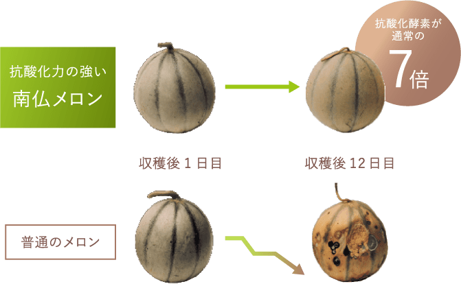 このメロンは収穫後も長期間鮮度を保つ特性があり、通常のメロンの7倍以上の抗酸化酵素を含むことが知られています。さらに、そのメロン抽出物をグリソディンに進化させる技術が注目されています。