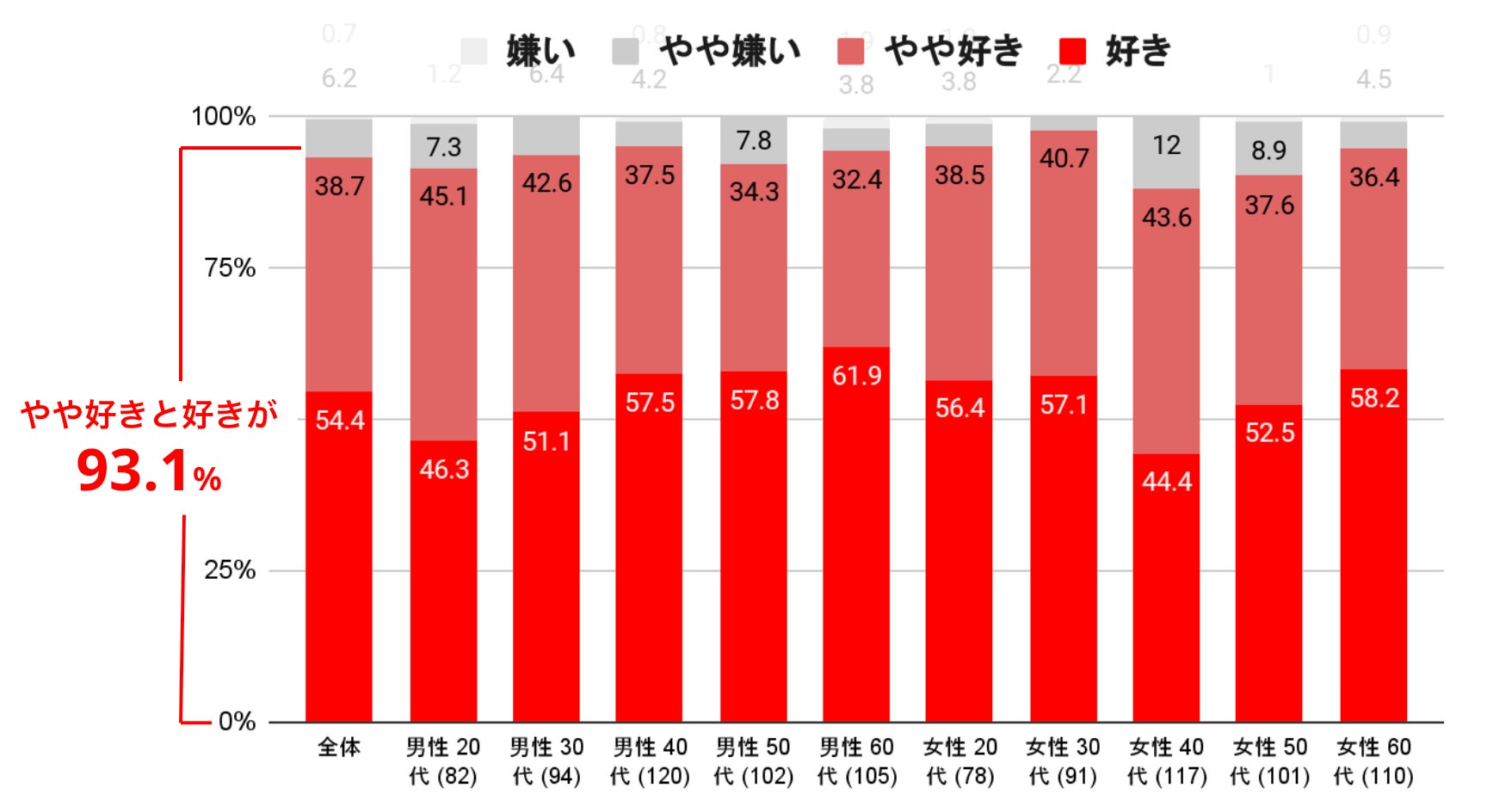 農林水産省のアンケートによると日本人の魚介類の1人当たりの消費量は2001年を境に減少し続けています*1。しかしながら、魚料理への好意度に関するアンケートでは大多数が「好き」と回答していることから、日本人の魚に対する好意度が下がったわけではありません*2。また、肉類と比べ魚介類をよく購入する理由について「健康に配慮したから」と答える方が多く、魚を食べることに健康効果を期待していることがわかります。