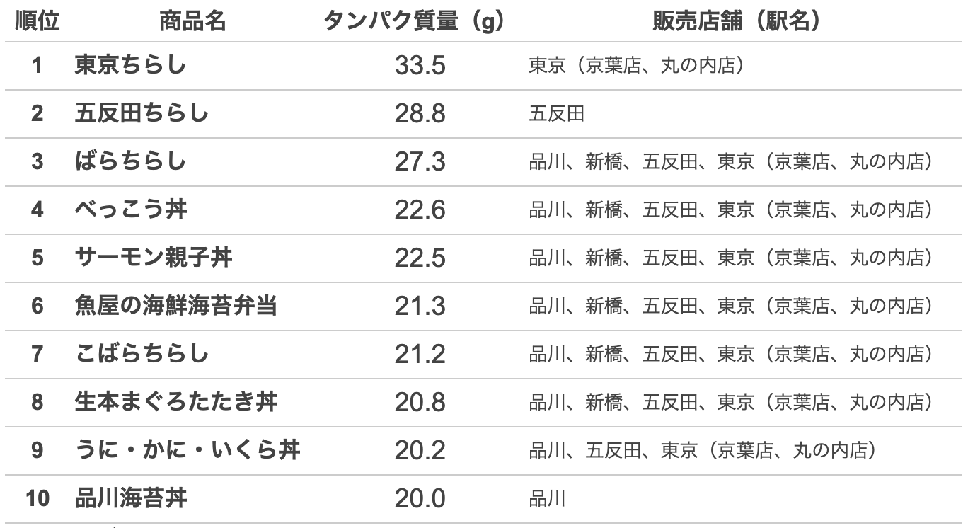 ■魚弁当タンパク質ランキング概要 駅ナカ限定