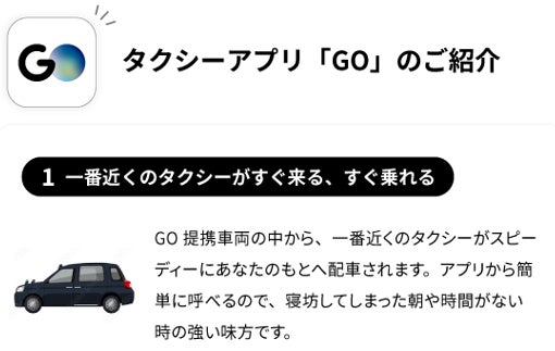 お届けするメールより、GOアプリ新規ご登録のうえ、クーポンコードを入力すると「GOクーポン1,500円分」のご優待が適用されます。