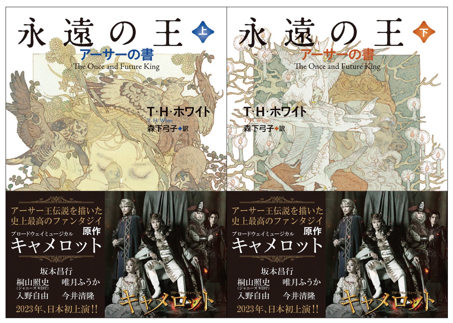 坂本昌行主演!ブロードウェイミュージカル『キャメロット』が2023年10月より上演。原作本『永遠の王』(T・H・ホワイト著/森下弓子訳)にスチール帯を付けて出荷を開始しました!