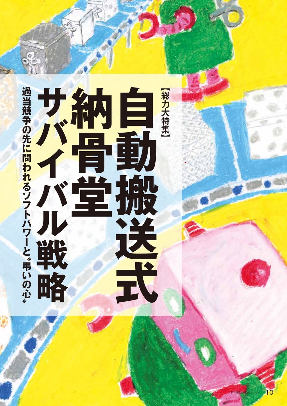 近年急増する自動搬送式納骨堂。都市型供養の新たなスタンダードとなる一方、競争激化の波も押し寄せています。本特集では、業界を牽引する注目施設6ヶ所の事例を徹底取材。各施設の差別化戦略や運営ノウハウ、最新技術導入の実態をレポートします。さらに今号では、好評を博しているカラスヤサトシ先生の連載漫画も巻頭に掲載。納骨堂というテーマに寄り添いながら、笑いと優しさを届けてくれる内容となっています。
