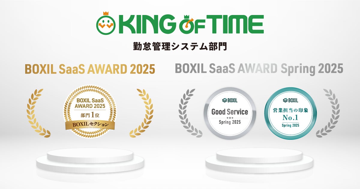 国内最大級のSaaS比較サイト「BOXIL」に寄せられた口コミの総得点が最も高いサービスとして、「KING OF TIME」が「BOXIL SaaS AWARD 2025」の勤怠管理システム部門で1位を受賞しました。