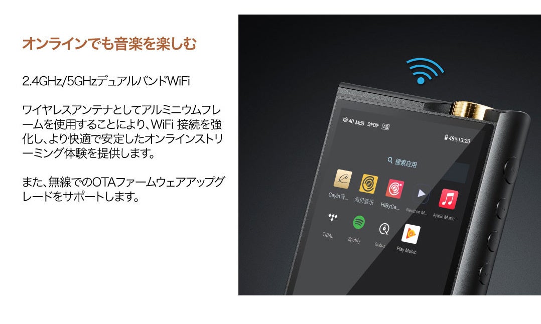ワイヤレスアンテナとしてアルミニウムフレームを使用することにより、WiFi接続を強化し、より快適で安定したオンラインストリーミング体験を提供します。また、無線でのOTAファームウェアアップグレードをサポートします。