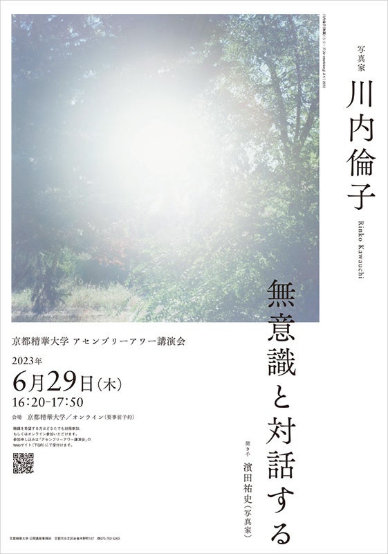 京都精華大学(所在地:京都市左京区、学長:澤田昌人)では、公開トークイベント「アセンブリーアワー講演会」に、写真家の川内倫子さんをお招きし、講演会「無意識と対話する」を行います。