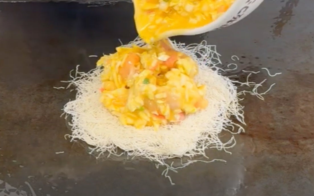話題の食材「カダイフ」をお好み焼きにイン? ”サクサク新食感”「豚玉」 新登場!