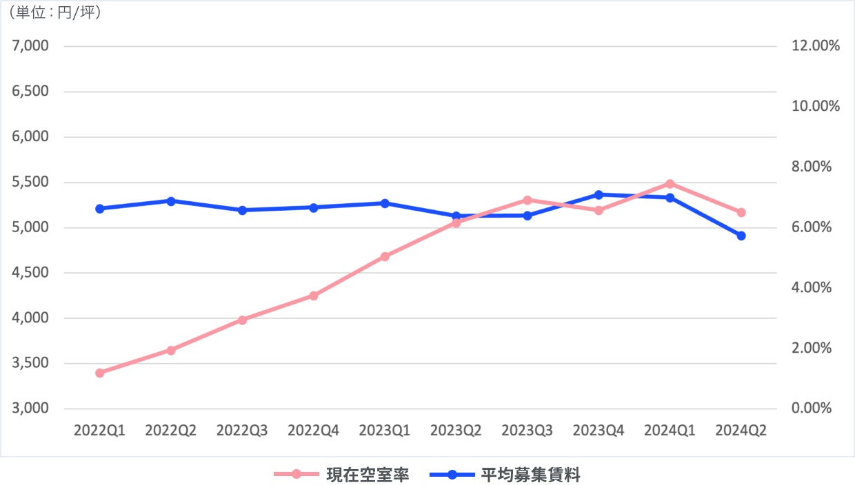 2024年第2四半期は、空室率が低下した一方で募集賃料は下落。今後の動向を注視。