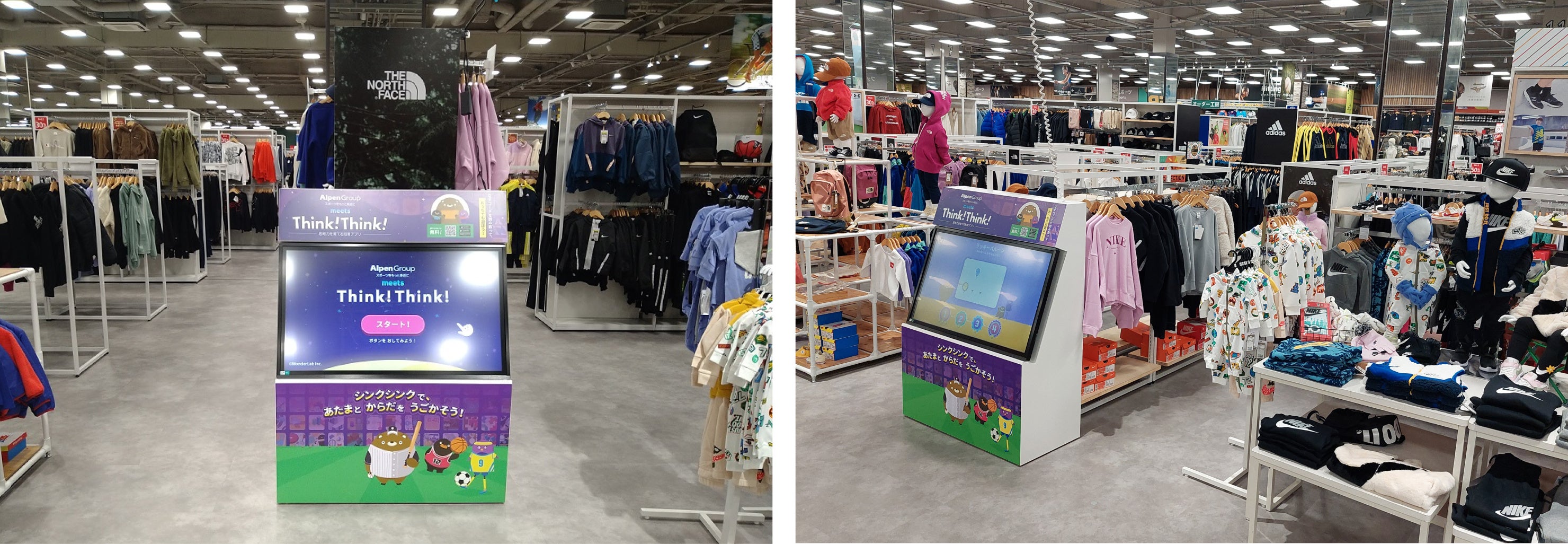 ワンダーファイ株式会社(本社:東京都文京区、代表取締役:川島 慶、以下 ワンダーファイ)は、スポーツ・アウトドア用品を販売する株式会社アルペン(本社:愛知県名古屋市、代表取締役社長:水野 敦之、以下 アルペン)とコラボレーションし、2022年3月に大型タッチパネルで頭とカラダを使って楽しむ「Alpen meets Think!Think!(アルペンミーツシンクシンク)」の提供をスタートしました。これまでアルペンが運営するスポーツデポ10店舗に導入されておりましたが、2022年12月初旬より導入店舗を更に19店舗拡大し、全国29店舗にてお楽しみいただけます。