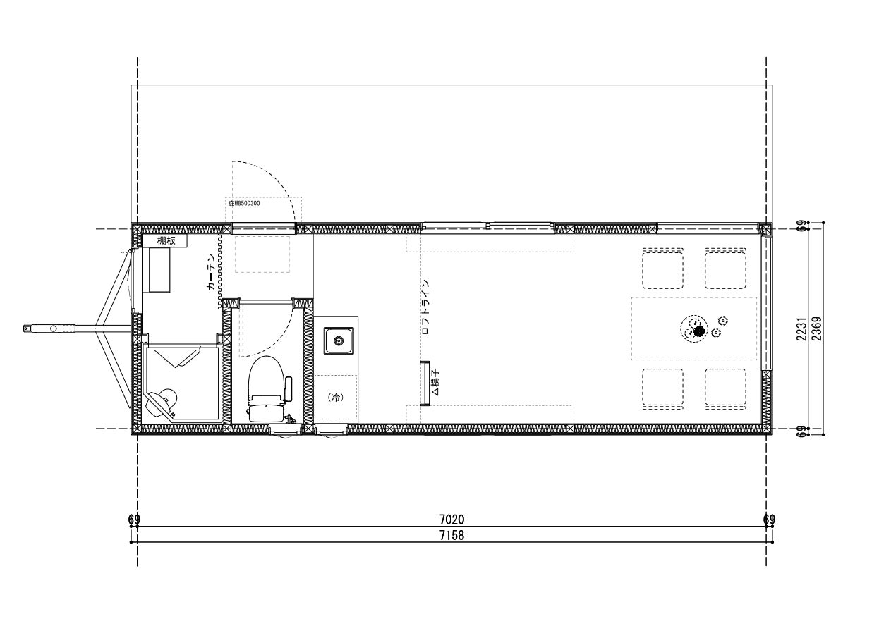 キッチン、トイレ、ユニットシャワー、洗面台がコンパクト且つ実用的に配置されており、複数人でも快適にご使用いただけます。