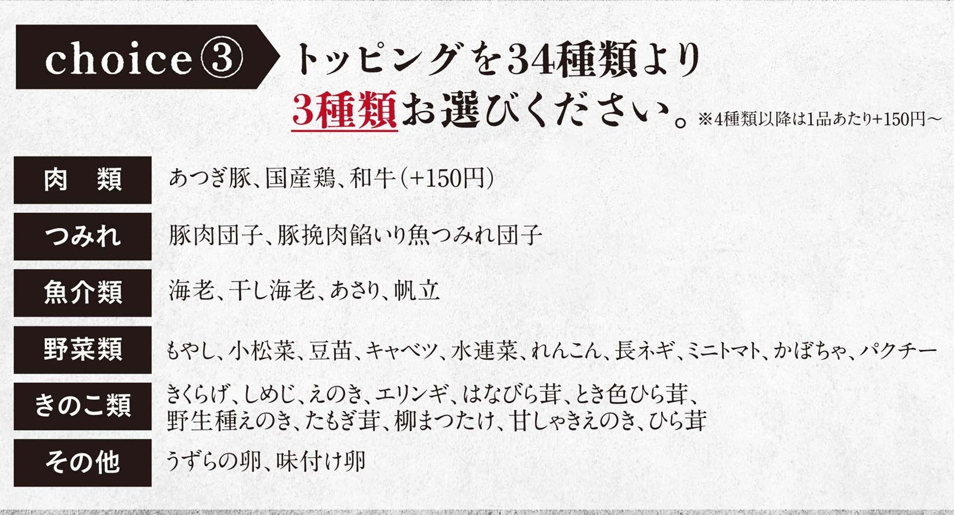 <選べる具材は34種類>