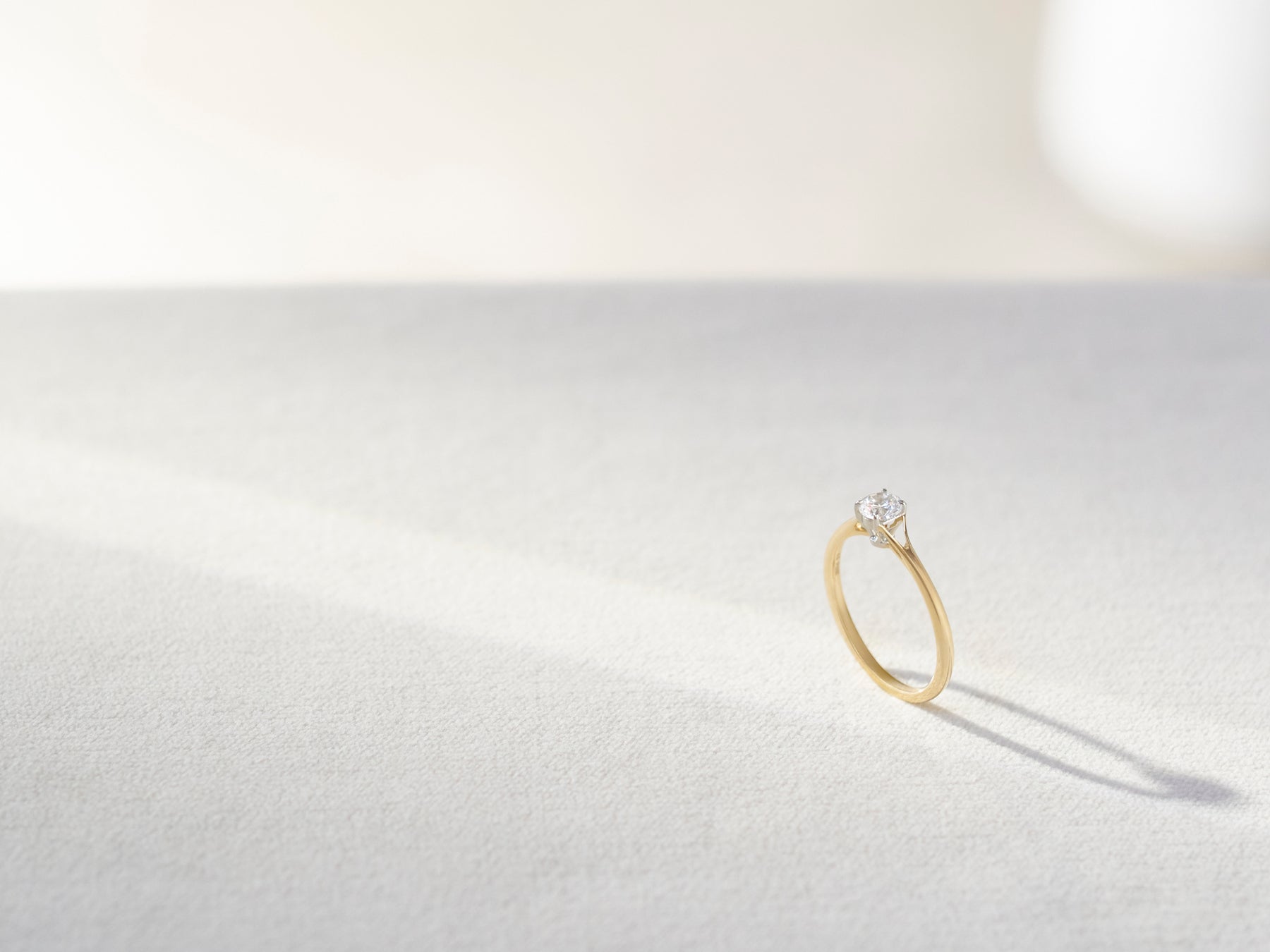 光沢のあるイエローゴールドのストレートなアームに、0.5カラットのダイヤモンドを組み合わせ、カジュアルで飾らない親しみやすさと、上質さを両立させた婚約指輪。年齢やシーンに左右されない、いつでも自信を持って身に着けられる上品なデザインです。