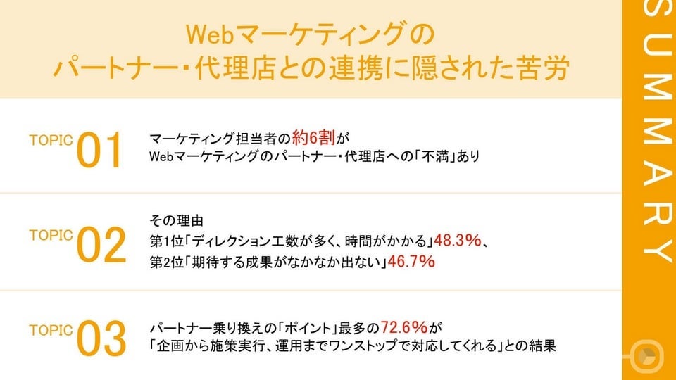 Webマーケティングのパートナー・代理店への不満、「クオリティとコストバランス」や「対応にムラがある」などの声