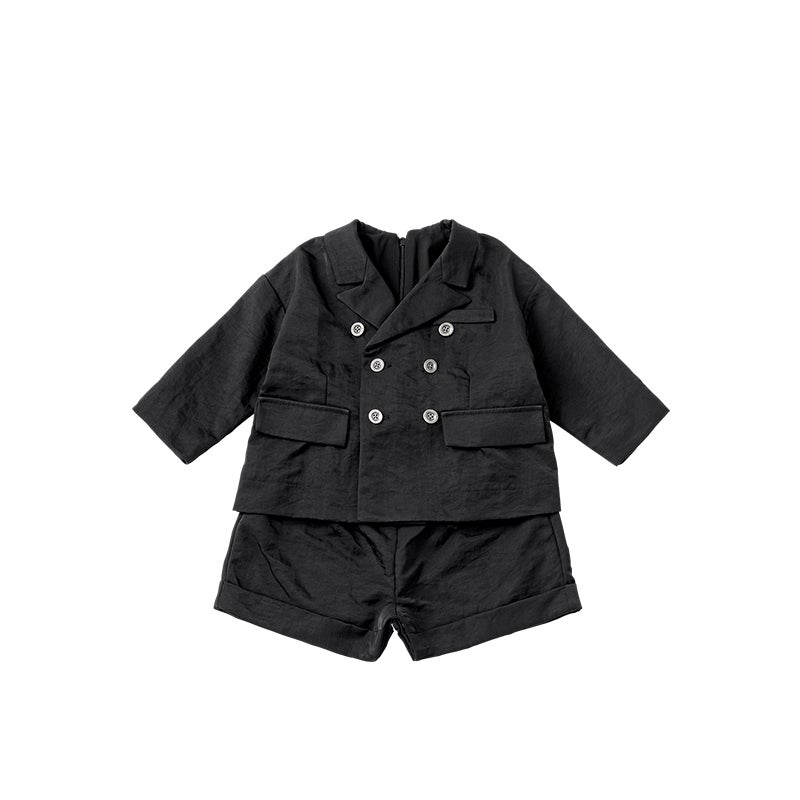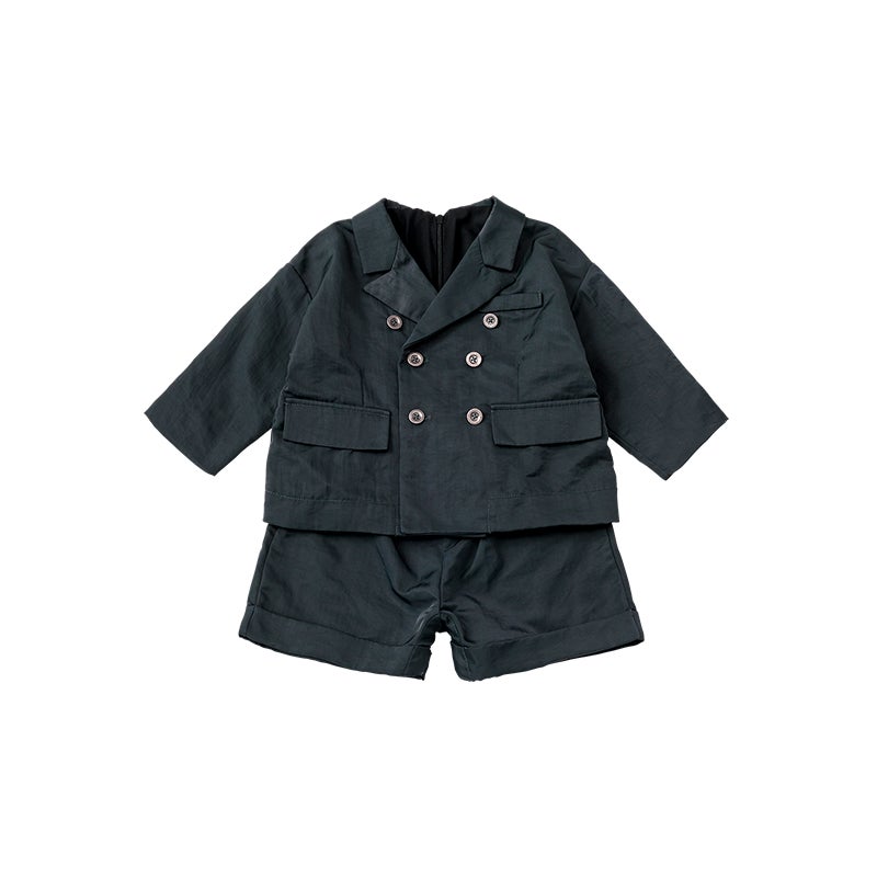 ブランド初の本格テーラードスーツは、シワになりづらく、撥水加工も施したタフな素材を採用。お食事シーンから外遊びまで安心して着用できます。