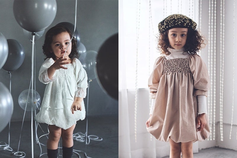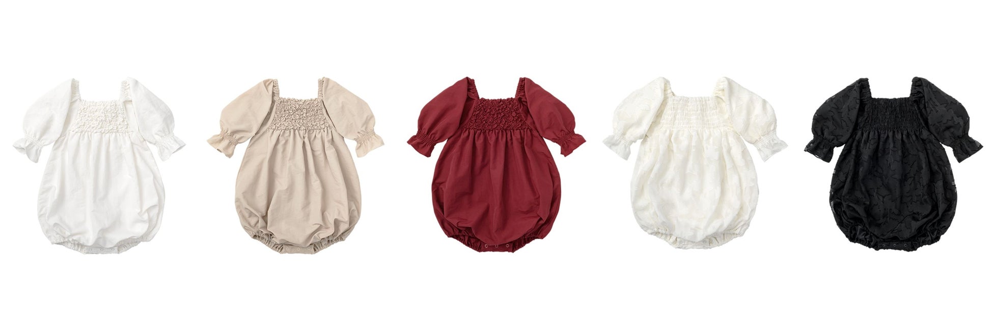 特別な日に着たいセレブレーションウエアシリーズ。ベビーにはロンパース、キッズにはワンピースを用意しました。