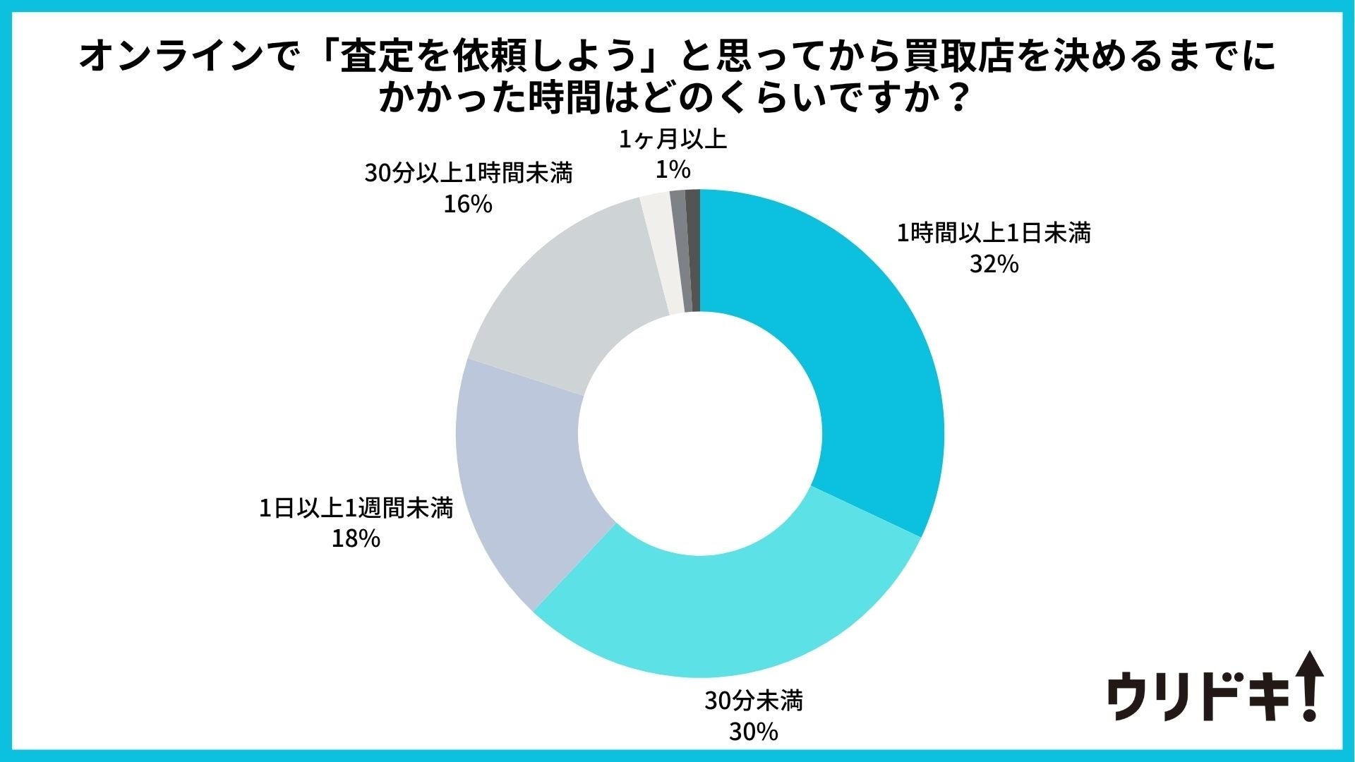 設問12:オンラインで「査定を依頼しよう」と思ってから買取店を決めるまでにかかった時間はどのくらいですか?