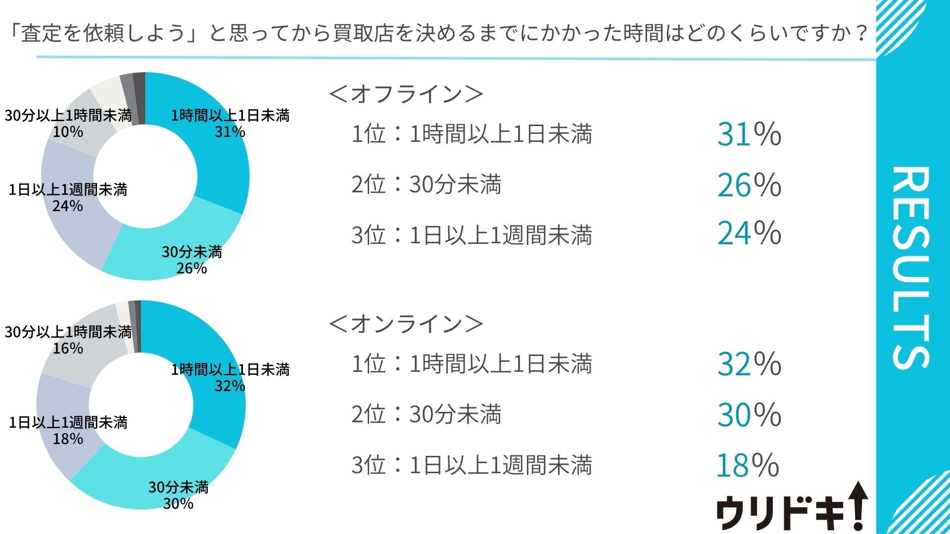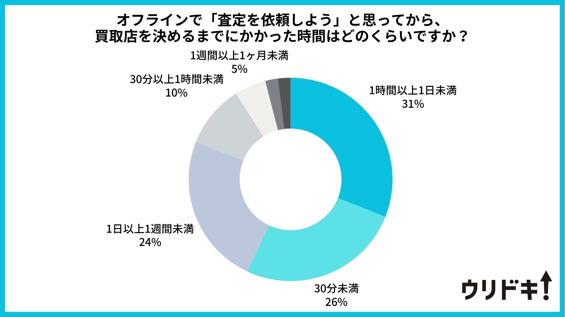 設問5:オフラインで「査定を依頼しよう」と思ってから、買取店を決めるまでにかかった時間はどのくらいですか?