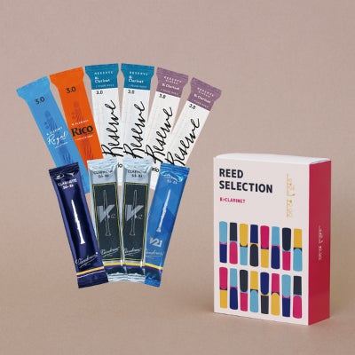 定番の「バンドーレン」青箱・銀箱や、ダダリオのリードメイキングの集大成として開発された “ 最高級ブランド ”「レゼルヴ」、世界で最も人気のあるリード「リコ」等が入っており、楽器はB♭クラリネット、E♭アルトサックスの2種類。強度は3、3½からお選びいただけます。