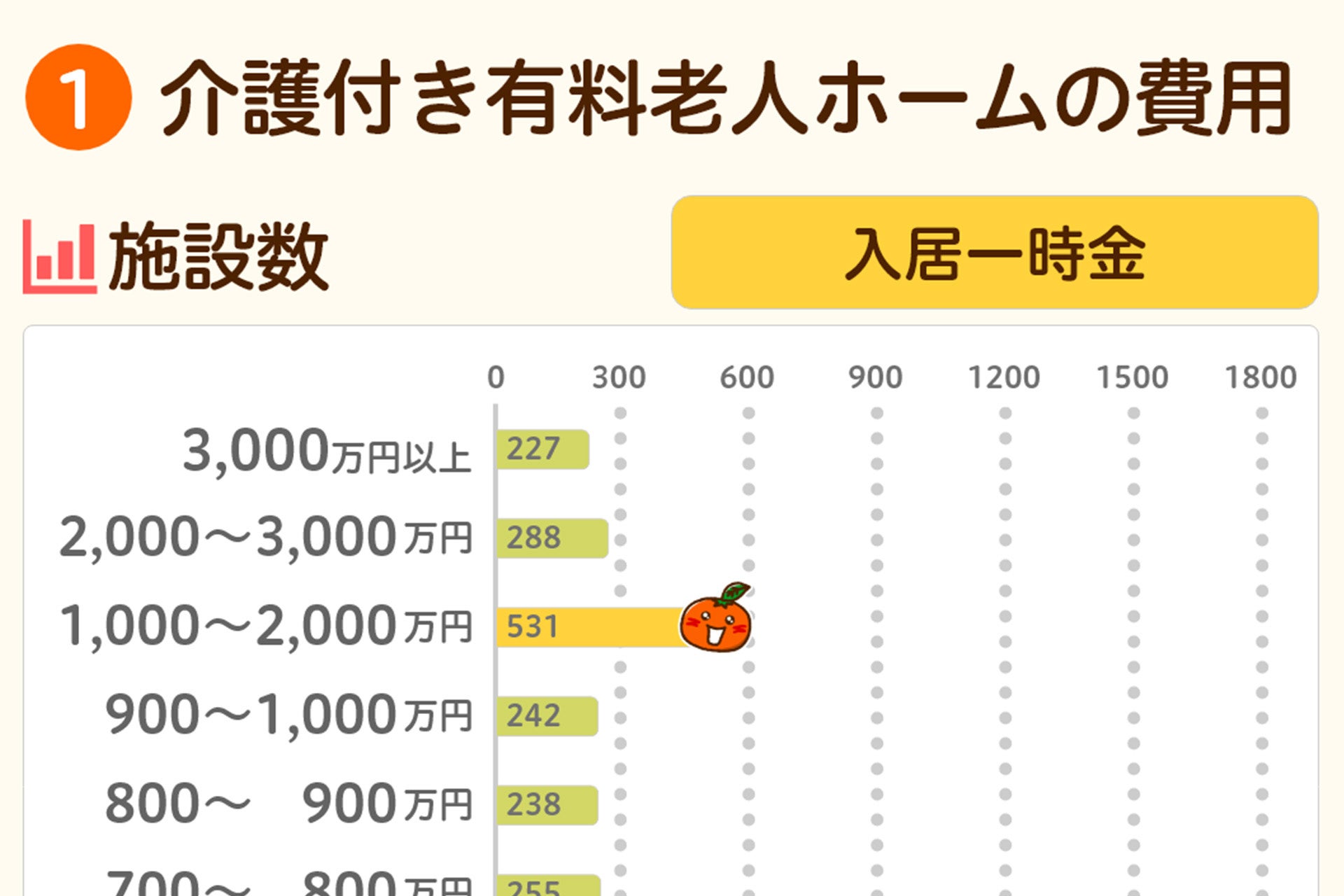 入居一時金は「なし」または「0円~10万円」と低く抑えられる施設が多いようです。一方で1,000万円以上に設定している施設も一定数あります。