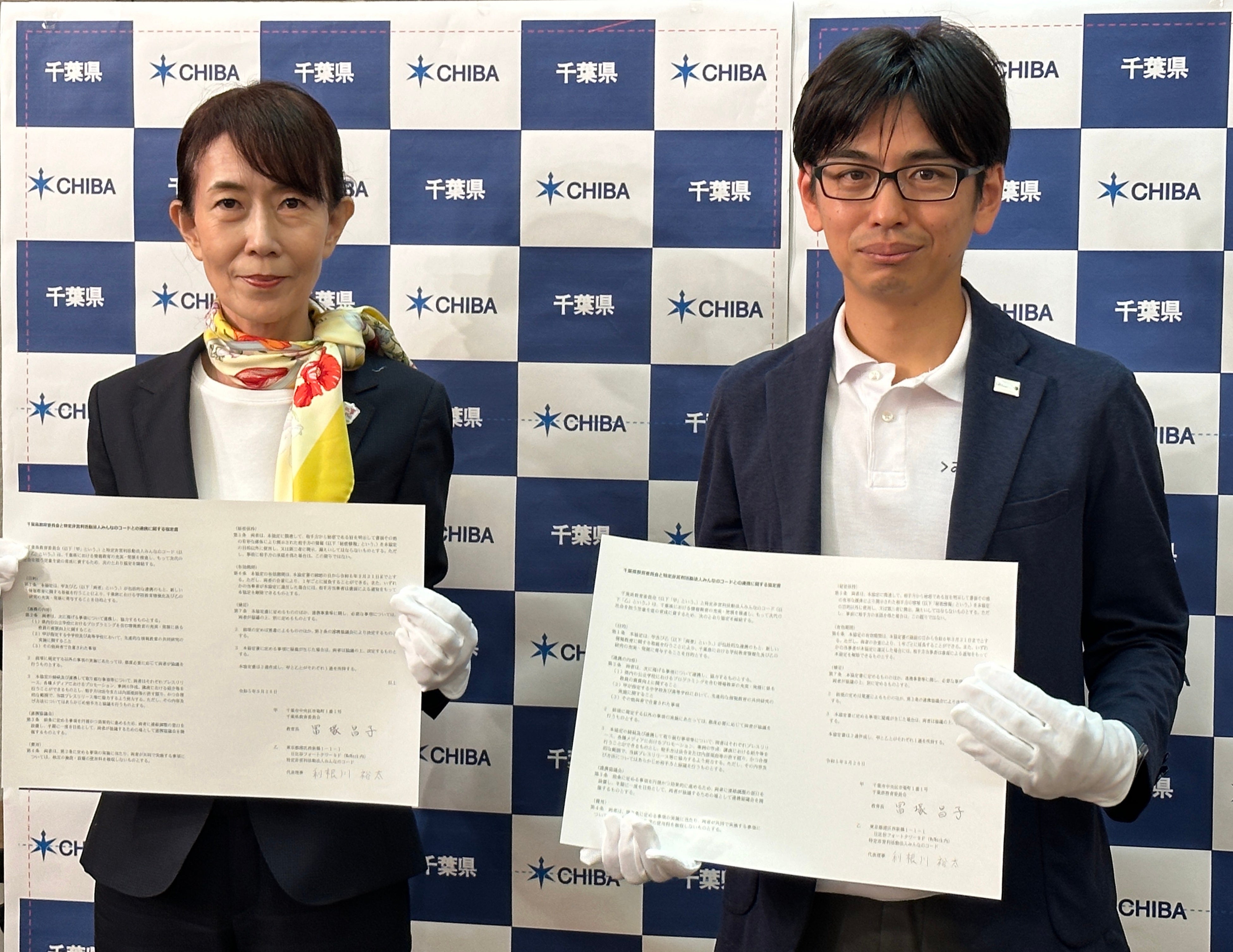 (左:千葉県教育委員会 冨塚 昌子 教育長、右:みんなのコード代表理事 利根川 裕太)