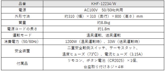 ホット&クール プレミアム KHF-12234/W