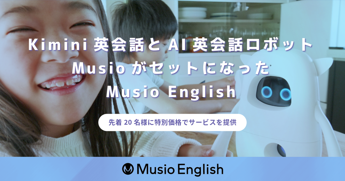 Kimini英会話とAI英会話ロボットMusioのセットサービスを先着20名様に特別価格で提供