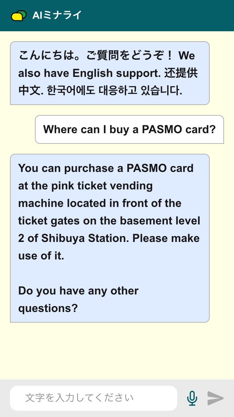 本実証は、東急および渋谷区観光協会と連携し、渋谷エリアの観光案内所「SHIBU HACHI BOX」「WANDER COMPASS SHIBUYA」で実施します。来訪者は掲出されたQRコードからAIチャットにアクセスし、駅や観光スポット、周辺施設へのアクセス方法などを、自然な対話形式で案内を受けることができます。対応言語は日本語・英語・簡体字・繁体字・韓国語。対話データは匿名化・統計化された形で分析され、案内の精度向上や運用改善に活用します。個人を特定する情報は取得せず、目的外利用は行いません。