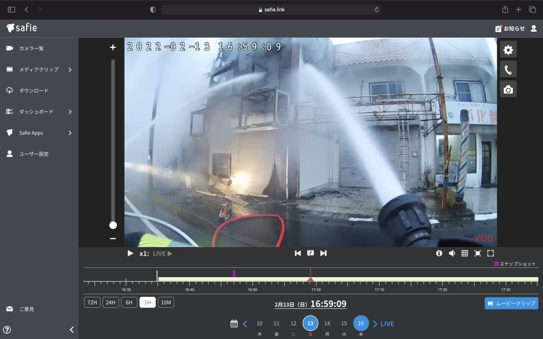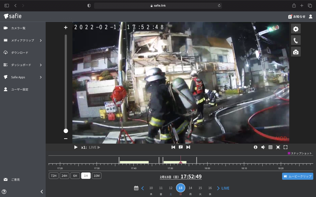 実際の火災現場では、通常活用されている無線機や通信用マイクが水滴や粉塵で脆弱化し連絡手段として無効になった一方、Safie Pocket2の活用で、現場の状況を映像と音声の二軸で判断することができました。通常業務に支障をきたすことがない上、部隊の指揮権者が情報を網羅的に把握し、各部隊に適切な指示を出すことができる状況を作り出せたことも特徴的でした。
