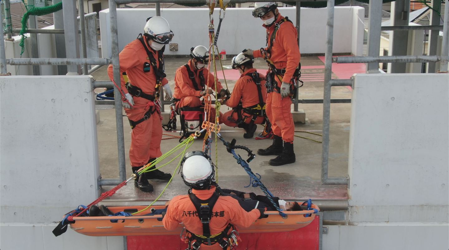 ・担架で運び出す際、救助者の様子を接写で確認し救助