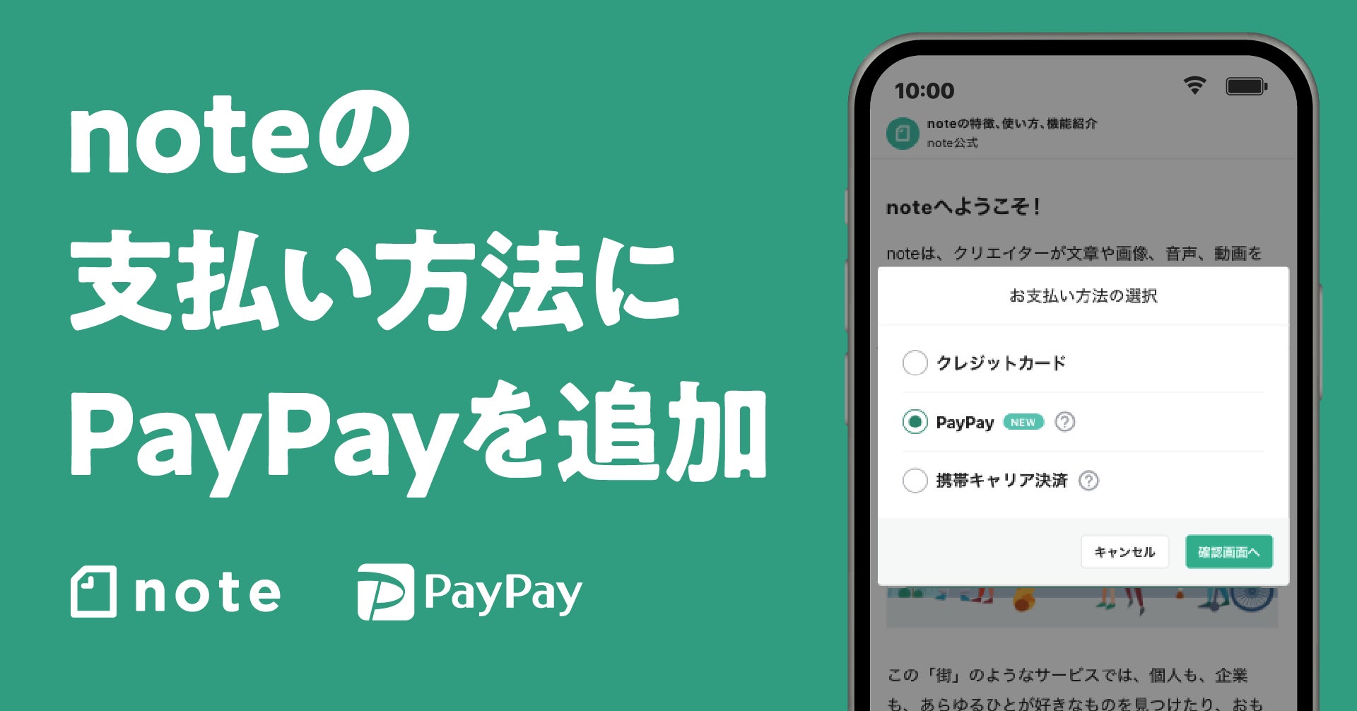 既存の支払い方法であるクレジットカード決済、キャリア決済に次いで、初のQRコード決済サービスの導入です。また、導入を記念して、本日よりnoteでのPayPay決済時に決済金額の最大10%のPayPayボーナスが付与されるキャンペーンも開始します。