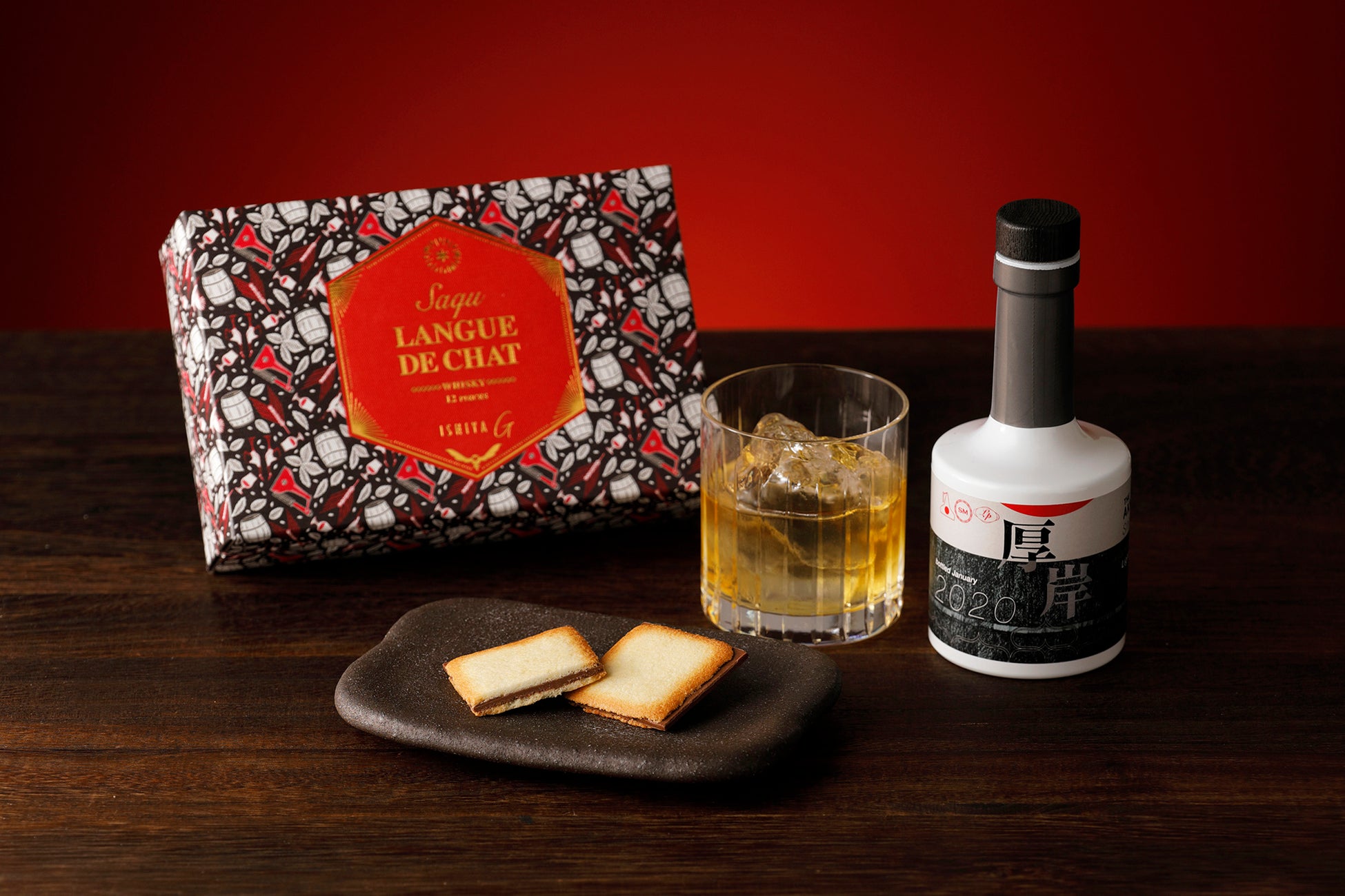 「サク」シリーズの期間限定フレーバーとなる「ウイスキー」。SFWSC最優秀金賞受賞の北海道・厚岸カムイウイスキー「サロルンカムイ」を配合したミルクチョコレートを、プレーンなラング・ド・シャでサンドしました。チョコレートのコクの中にウイスキーの風味を感じる、ちょっぴり大人な味わいです。