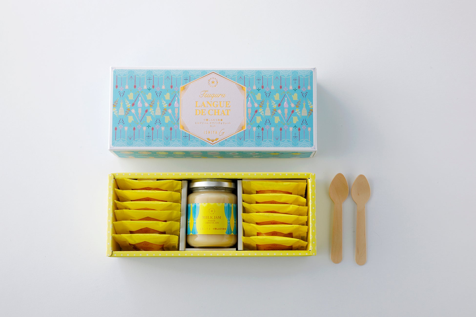 本商品は、サクサクに焼き上げたプレーンなラング・ド・シャと、ISHIYAオリジナルのホワイトチョコレートを使った、オリジナルのミルクスプレッドで楽しむ“自分でつくる”スイーツ。