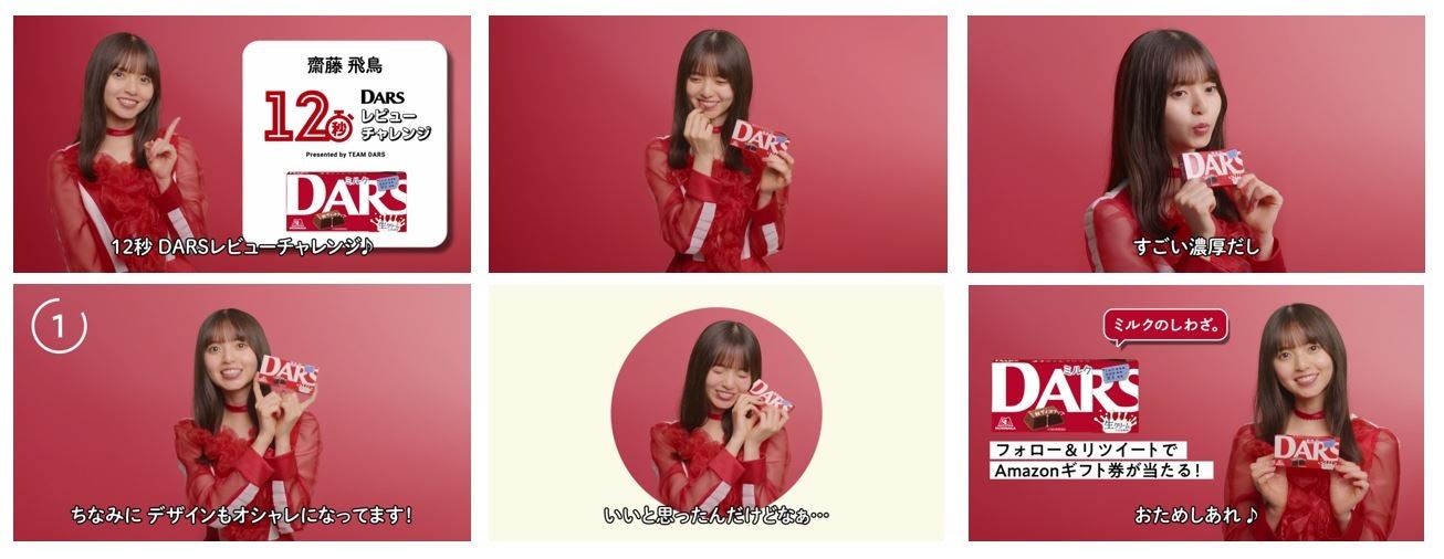 森永製菓チョコレート公式Twitterでは、メンバーが12秒で「ダース」の食レポなどに挑戦する「“12秒” DARSレビューチャレンジ」動画も順次公開いたします。