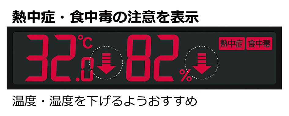 温度・湿度表示の横に「⇑」「⇓」のアイコンを表示し快適な温度・湿度へ誘導します。