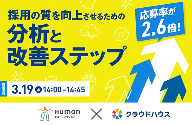 「応募率が2.6倍!採用の質を向上させるための分析と改善ステップ」セミナーを『クラウドハウス採用』が共催 | 株式会社Techouse×ヒューマンリソシア株式会社| 3月19日(水)