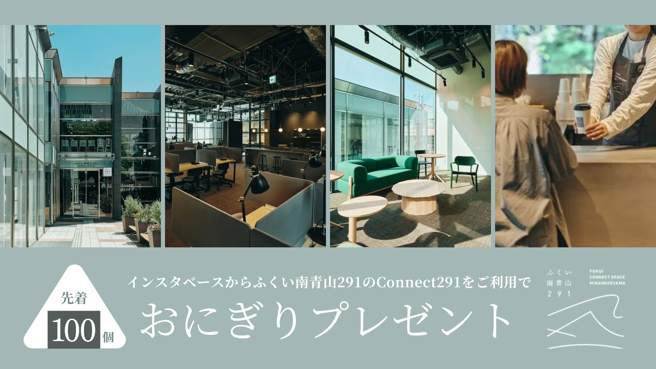 「Connect291- ふくい南青山291 -」予約・利用開始を記念して、先着100名様に福井のブランド米「いちほまれ」を使ったおにぎり引換券をプレゼントするキャンペーンを開催いたします。