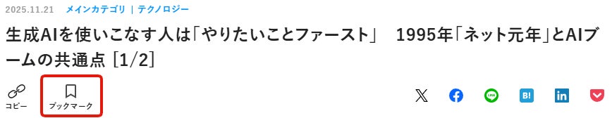 視認性を大幅に向上させるため、ブックマークボタンのデザインを変更しました。従来のブックマークボタンの下に「ブックマーク」の文字を明示することで、一目で機能を認識できるようになりました。