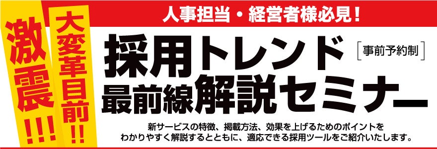 第二部では、ご参加企業様からの質問も受け付けますので、人手不足に悩まれている企業様はもちろん、これから採用を考えている企業様にも役立つ内容となっていますので、ぜひご参加ください。