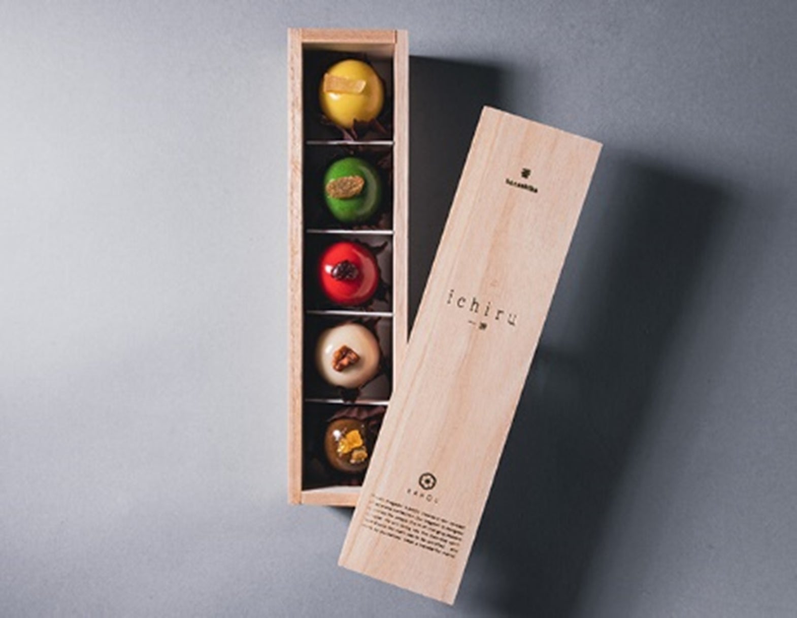 クランべリー、マスカルポーネ、ピスタチオ、檸檬、アールグレイと白餡をメランジュし寒天で包み込みました。