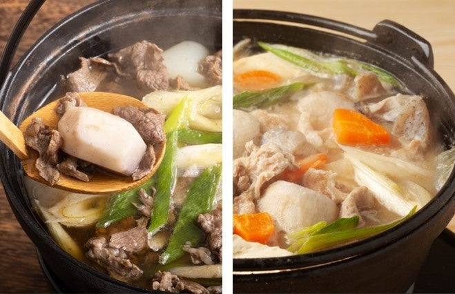 芋煮といえば「宮城と山形の芋煮、結局どちらがおいしいの?」論争。仙台味噌と豚肉の滋味深い味わいの宮城、牛肉に山形の地元醤油で仕上げるさっぱりとした味わいの山形、隣り合った県同士の自慢の芋煮、地域によって違った味わいの芋煮を、食べ比べてみてください。