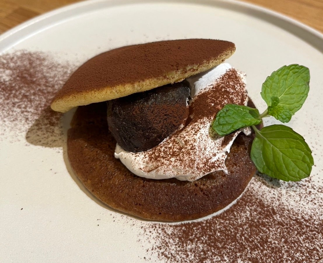エスプレッソと日本酒を染み込ませたどら焼きで作る和風ティラミス。