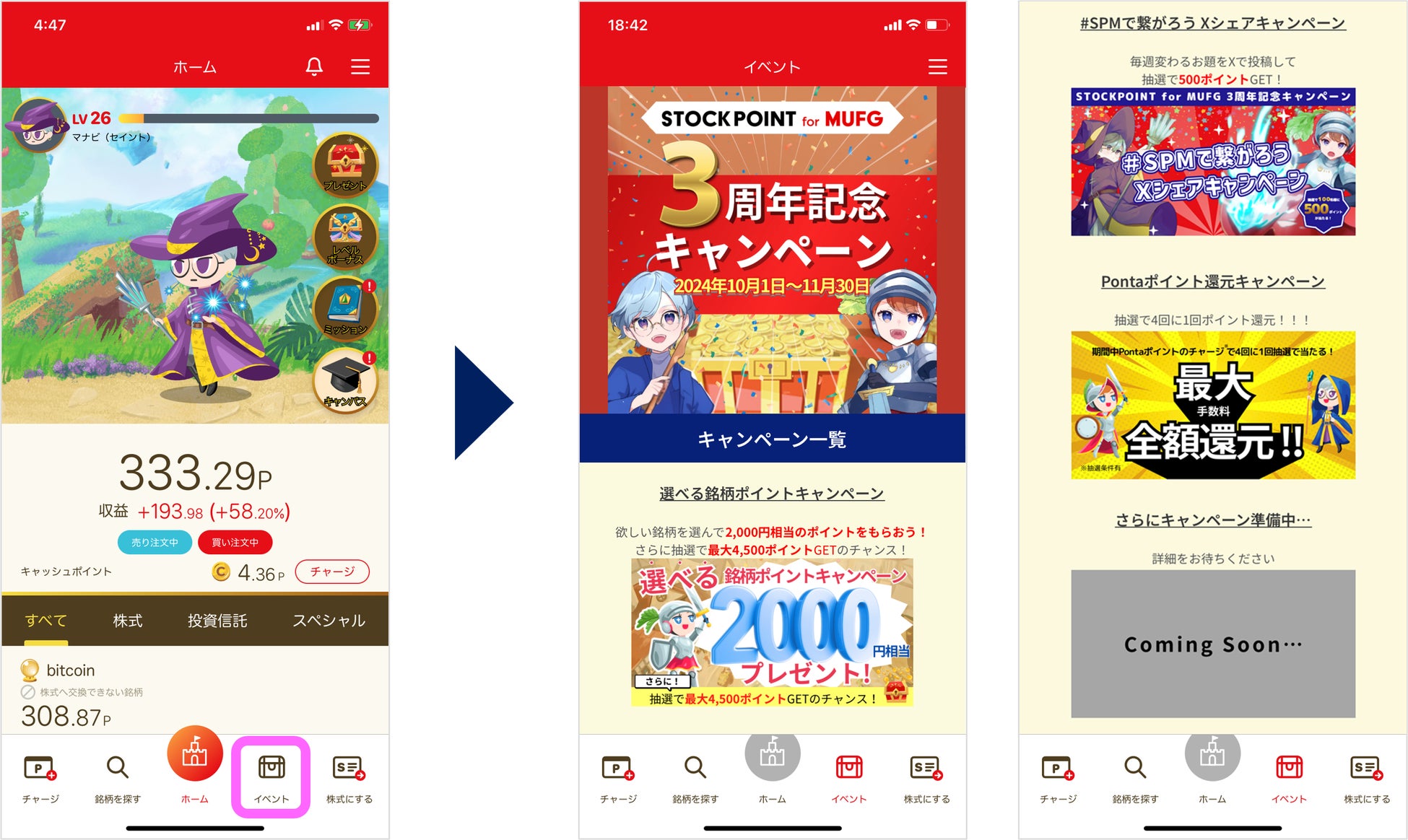 STOCK POINT株式会社(本社:東京都港区、代表取締役社長:美好琢磨)は、当社が運営するロールプレイングゲーム(以下「RPG」)の世界観で子供から大人まで楽しめるポイント運用アプリSTOCKPOINT for MUFG(以下「SPM」)が、2024年10月1日(火)に3周年を迎えることを記念し、4つキャンペーンを実施いたします。