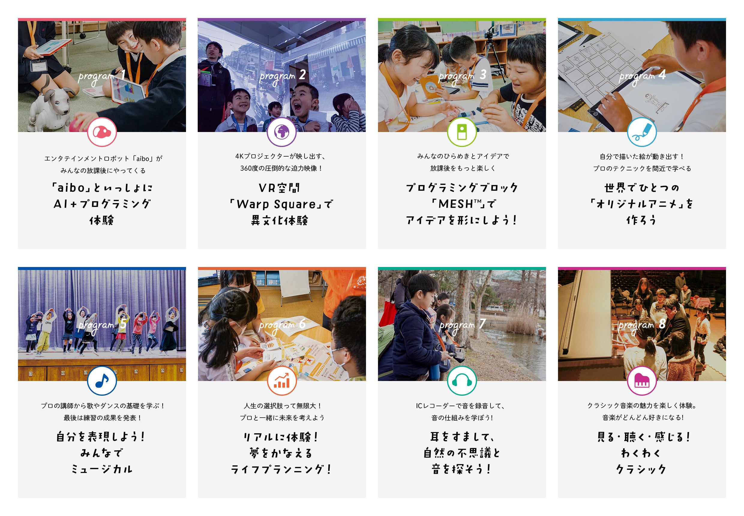 ソニーのテクノロジーやエンタテインメントを活用した、STEAM分野の8つのプログラムを提供。